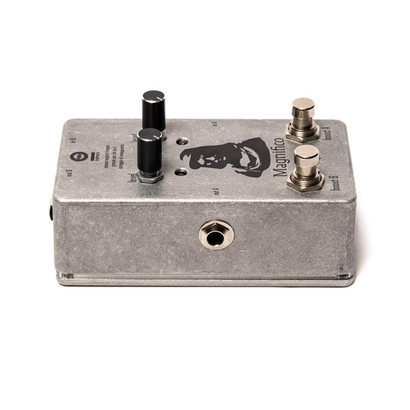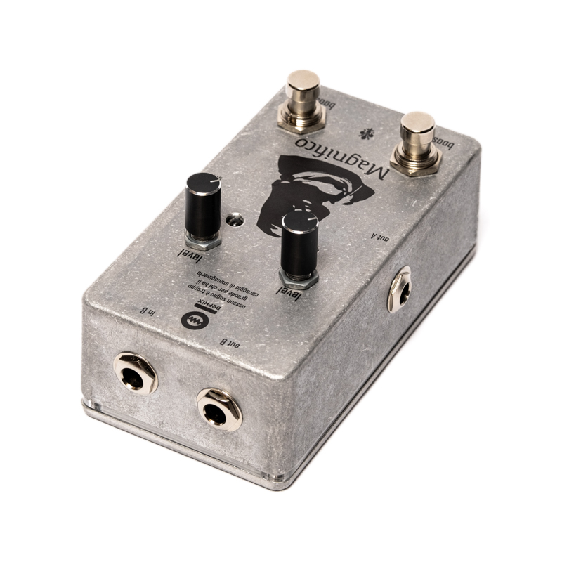 Magnifico is a fully analog, dual independent boost pedal designed to deliver exceptional dynamics and tonal enhancement for your guitar. Each boost channel operates separately, offering complete control and flexibility for any playing situation.